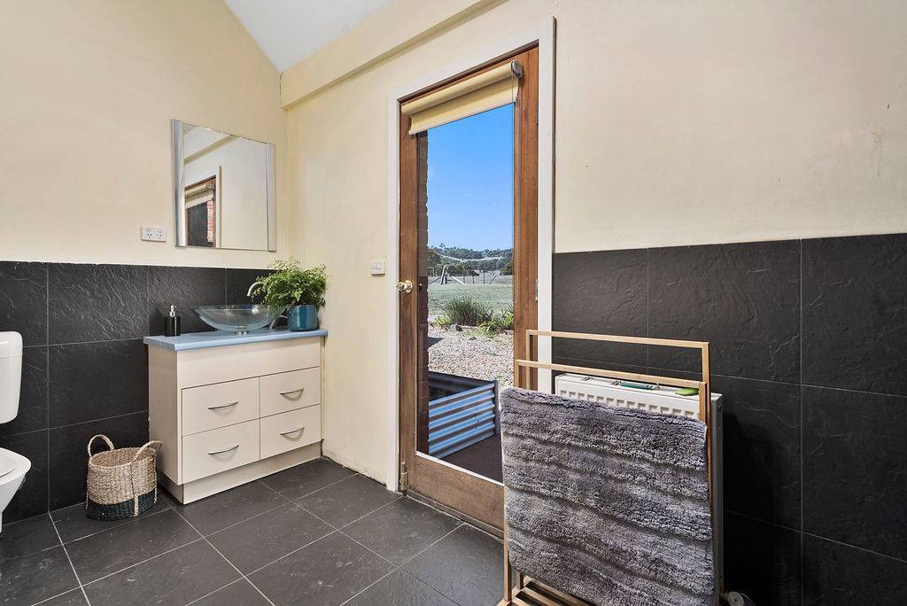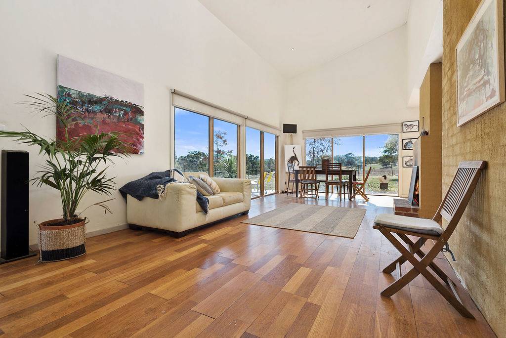 Enter the property up a winding driveway to the contemporary 4 bedroom, 2 bathroom home with open plan north-facing living/dining/kitchen with floating timber floors, open fireplace and soaring ceilings.