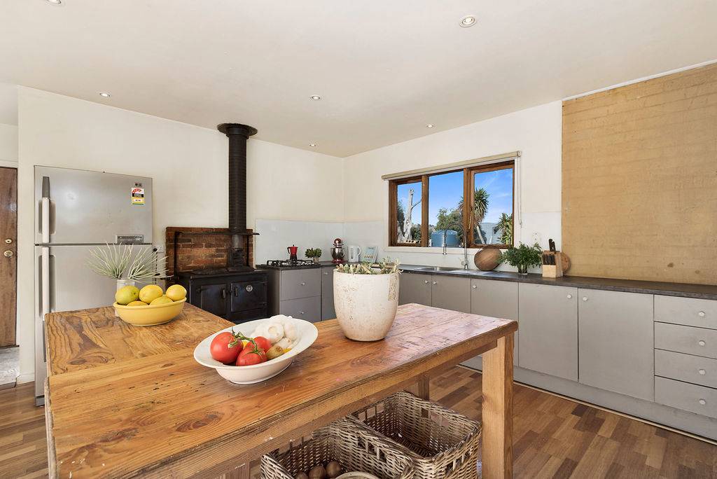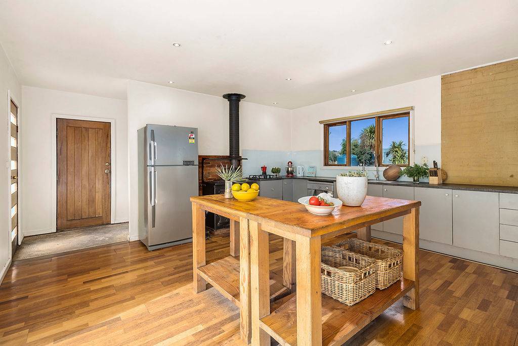 The large kitchen area has a slow combustion stove that heats the household's water (with electric backup) as well as gas hotplates, dishwasher, large pantry area and island bench.