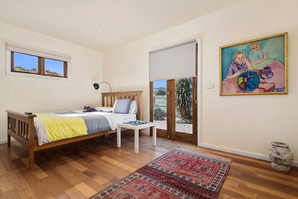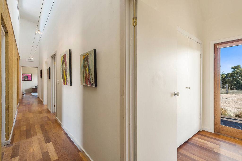 The main hallway extends from the living room past 3 bedrooms to the sitting room complete with open fireplace and french doors to the westerly verandah. There are a total of 4 bedrooms, all with built in robes, floating timber floors and french doors to the outside.