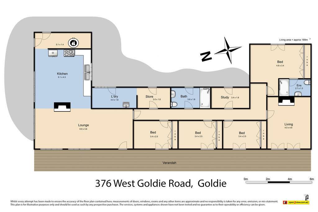 There is a study, 2 bathrooms (ensuite to main), laundry with external access and a separate storage room.
