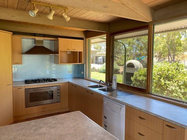 Enjoy living in this light and airy family home with vaulted ceilings and double glazing throughout. Comprising 3 bedrooms and additional study or 4th bedroom (main with walk through robe and ensuite), generous open plan kitchen and dining/living with reverse cycle split system, Nectre wood heater and beautiful lake views. There is a separate spacious living/family room with gas fire plus additional games room off the double carport.