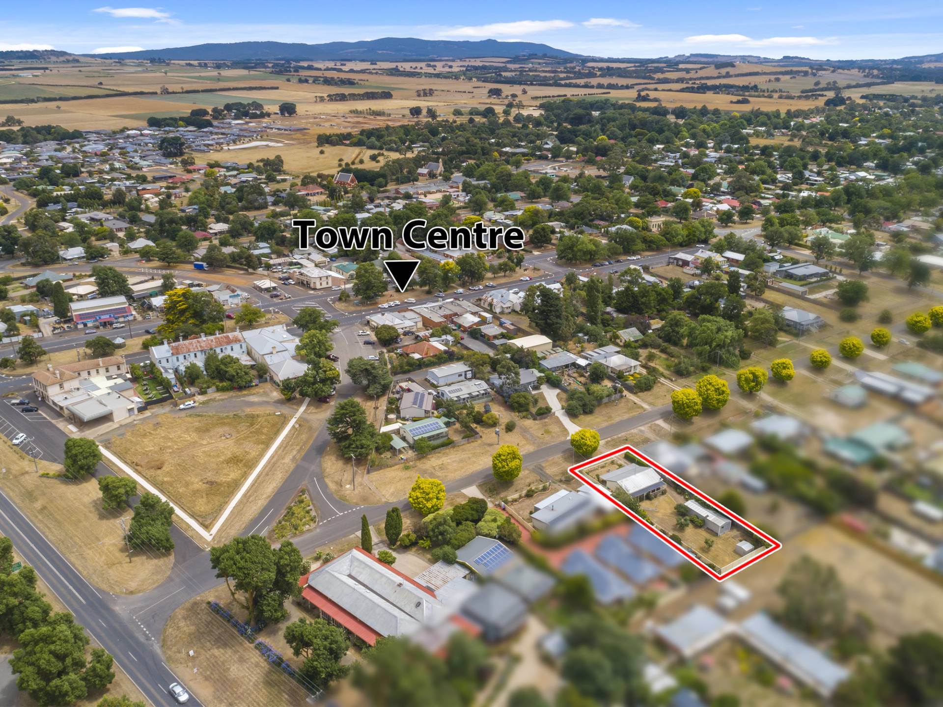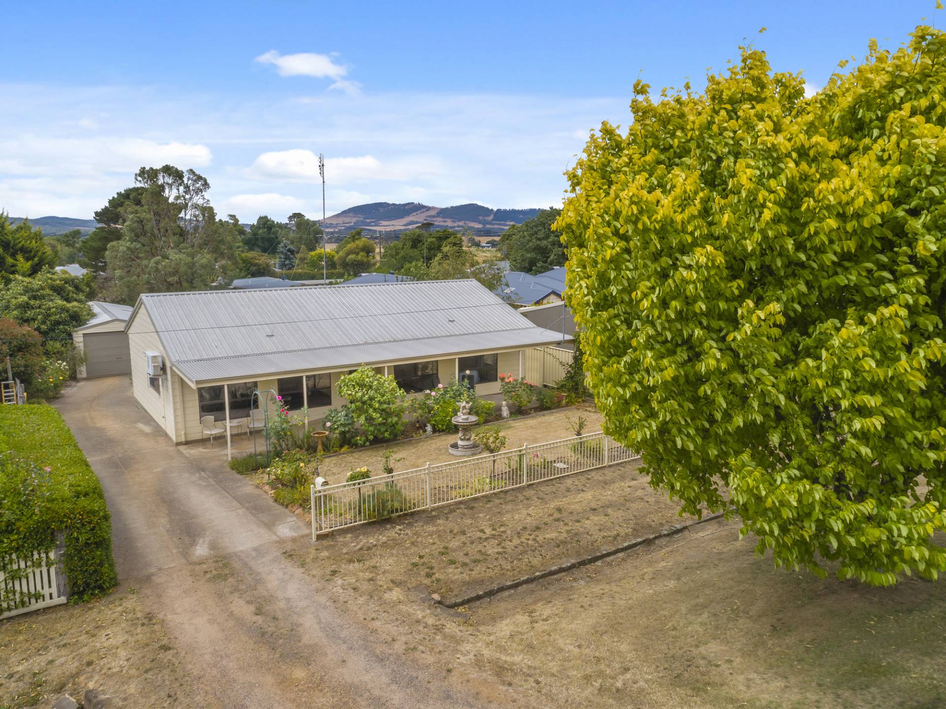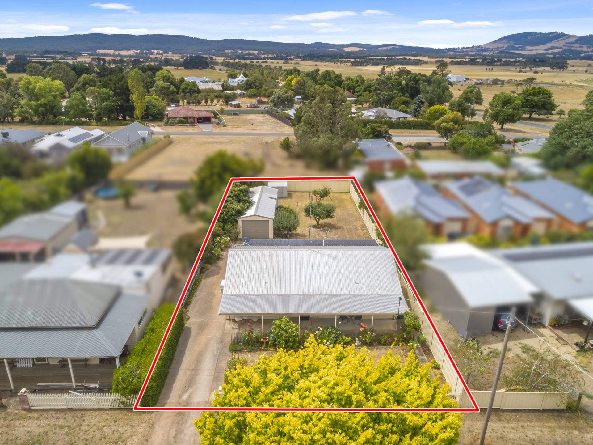 Comprised of three bedrooms all with ceiling fans and built in robes, there is also a split system in the main bedroom. Living room with gas heater and reverse cycle split system, north facing kitchen and meals area with new flooring opens to an elevated rear deck with views to Mount William and the Cobaw Ranges.