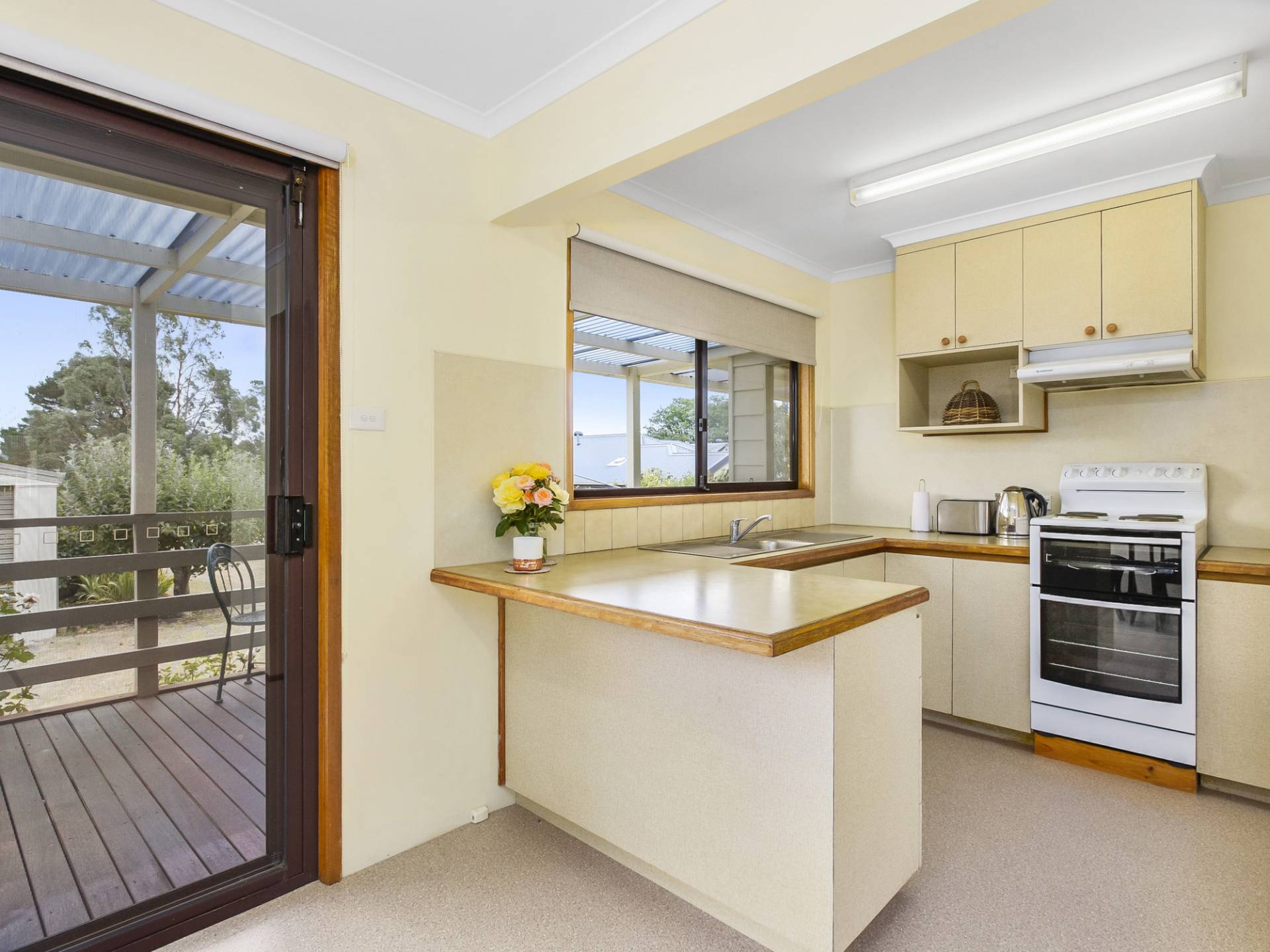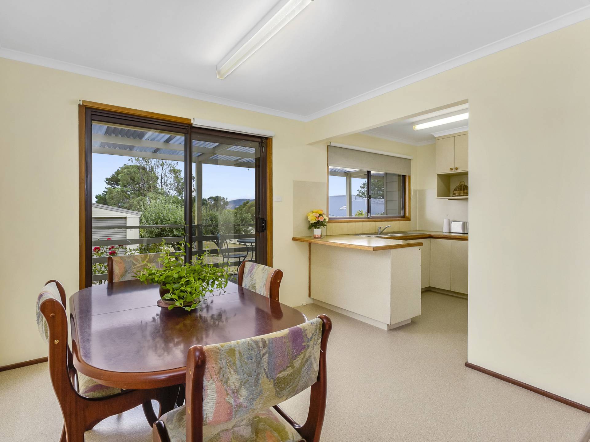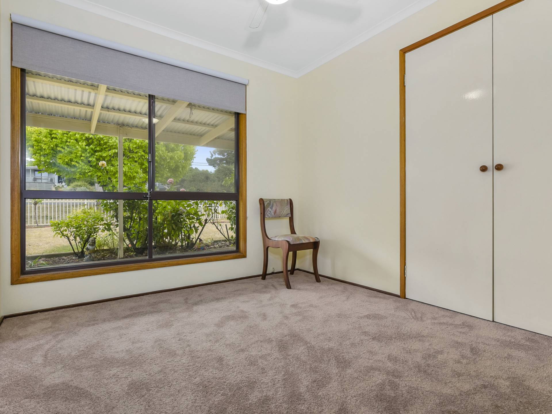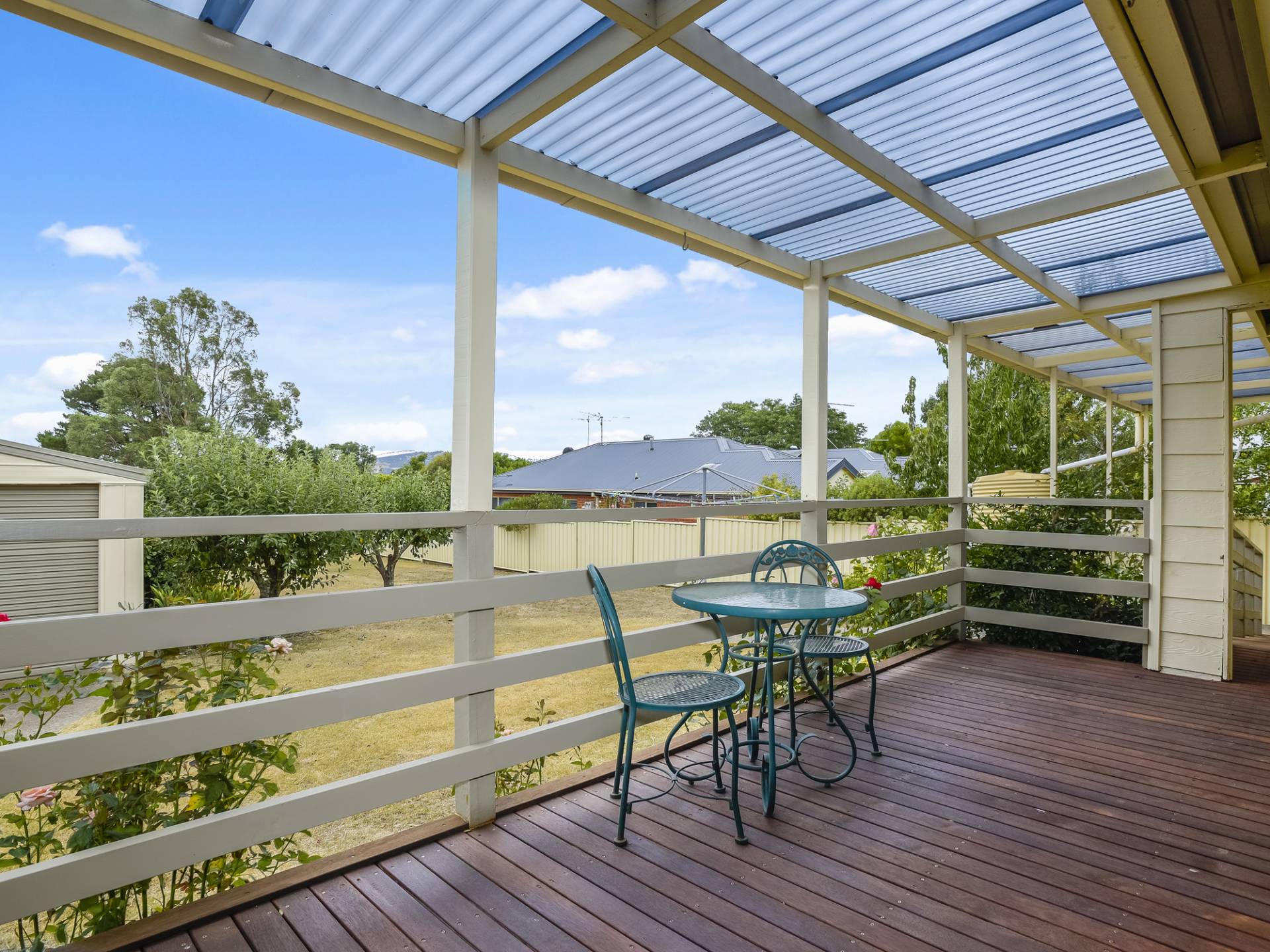 Comprised of three bedrooms all with ceiling fans and built in robes, there is also a split system in the main bedroom. Living room with gas heater and reverse cycle split system, north facing kitchen and meals area with new flooring opens to an elevated rear deck with views to Mount William and the Cobaw Ranges.