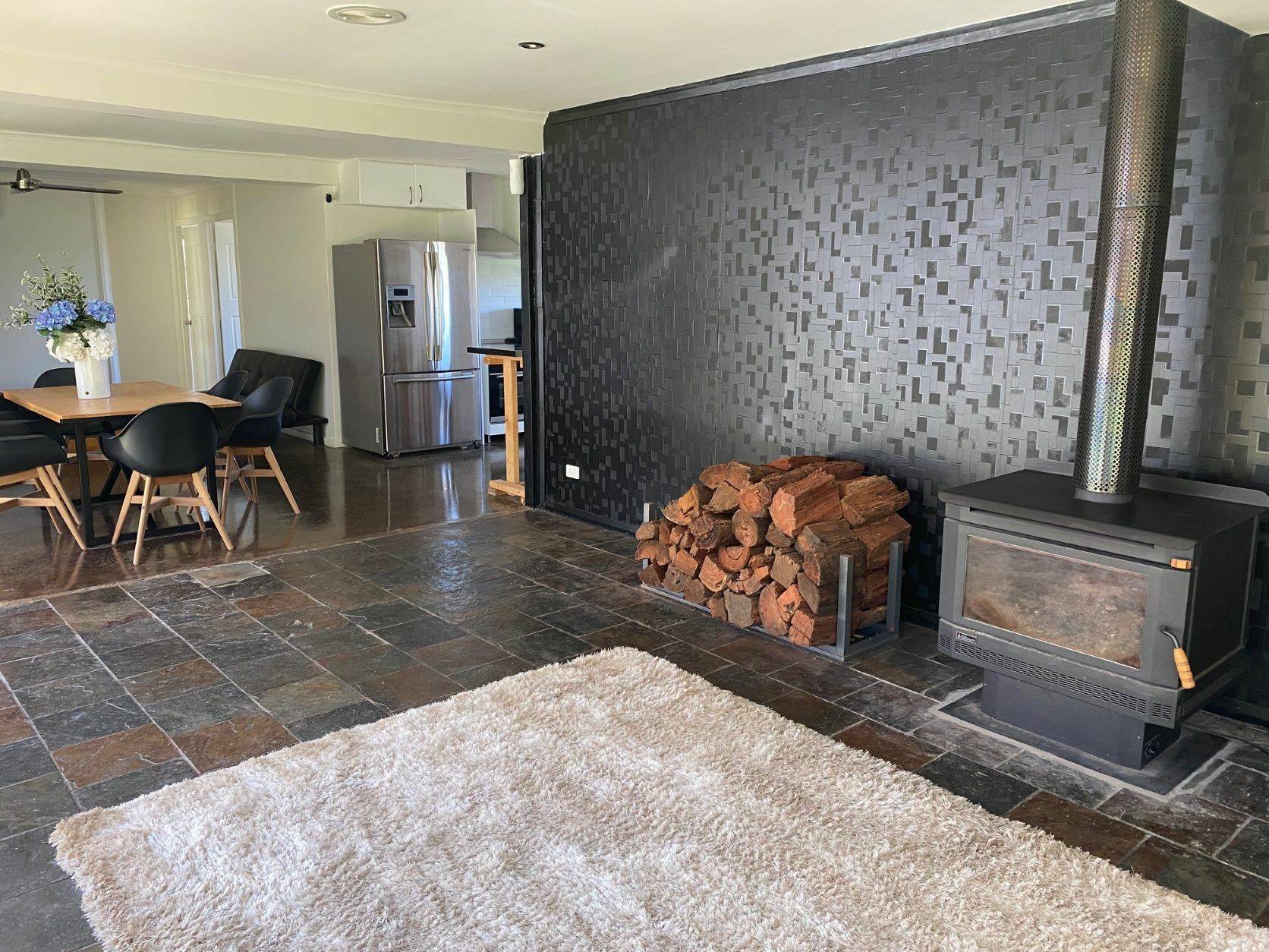 The home provides a well-appointed kitchen with electric cooking and dishwasher, dining and multiple living areas with slate and polished concrete flooring throughout. The 2 bathrooms have been tastefully renovated and include a generous freestanding bath and rainwater shower head. Year-round comfort is assured with reverse cycle split system, ceiling fans, two open fire places and a slow combustion wood heater.