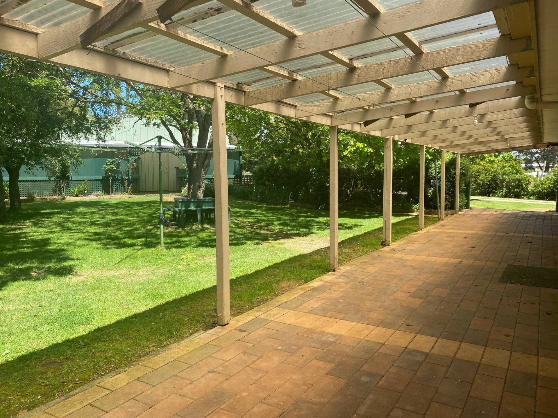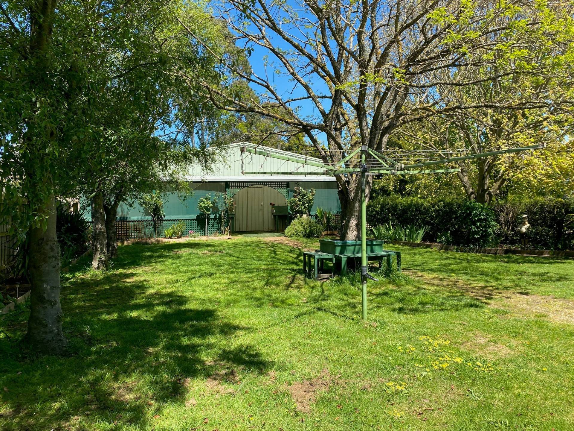 Private front gardens with established trees and colourful garden beds behind cypress hedging. Carport at side of property with vehicle access through to secure rear yard and elevated and enclosed three bay shed plus additional bay, complete with concrete floor, sliding doors and power connection.