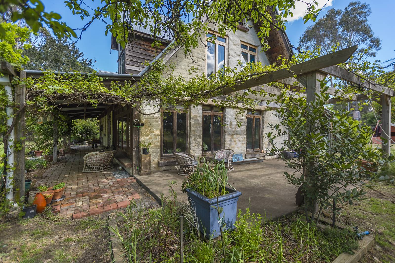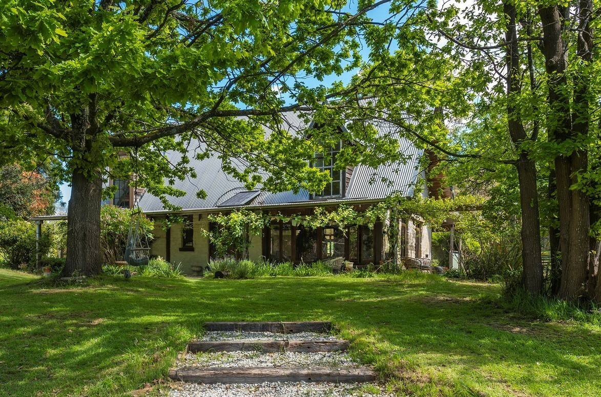 Rural oasis with carefully positioned north-facing two-storey mud brick home that blends natural, reclaimed and historical elements to create a unique warmth and ambience.