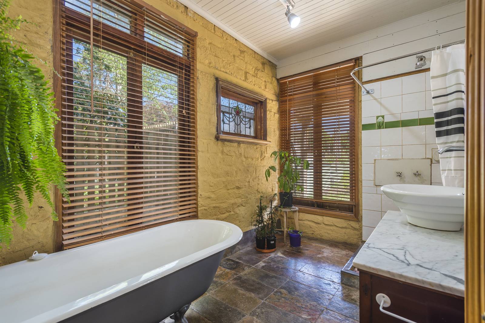 The family bathroom with claw foot bath is perfect for soaking away the day and there is a functional laundry/mud room with external access to come in after a day in the garden.