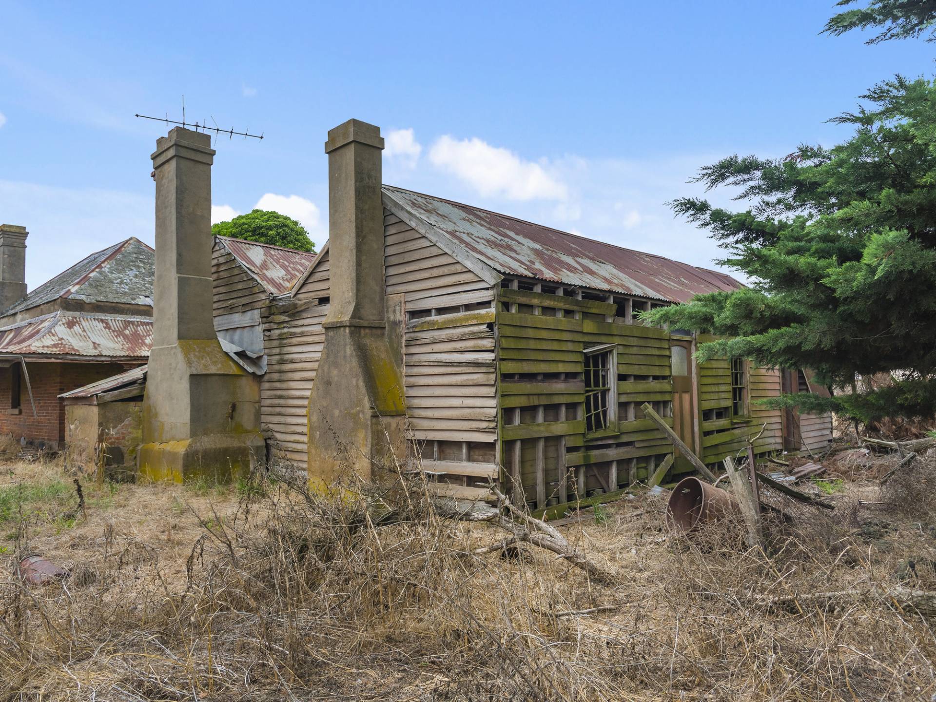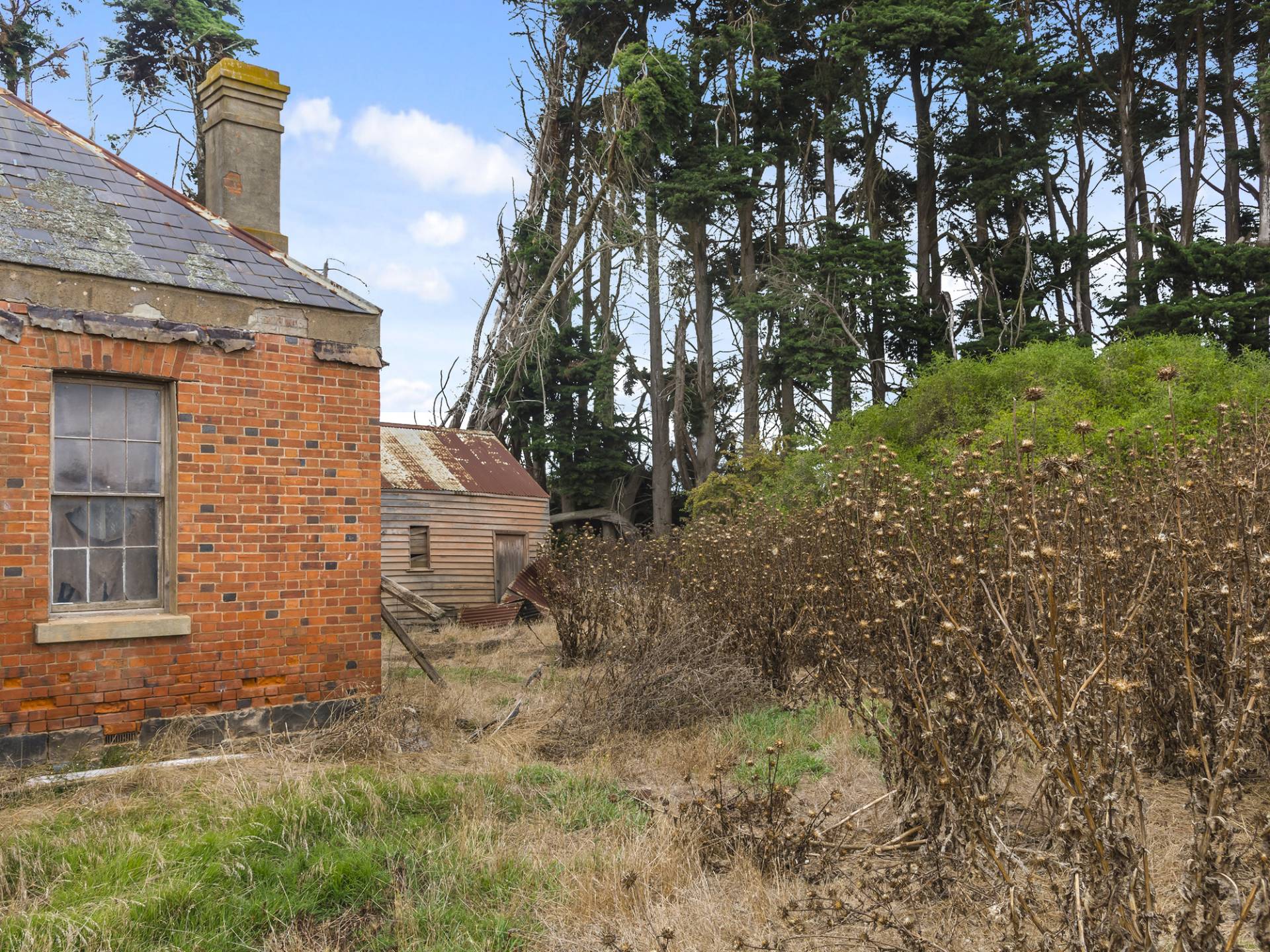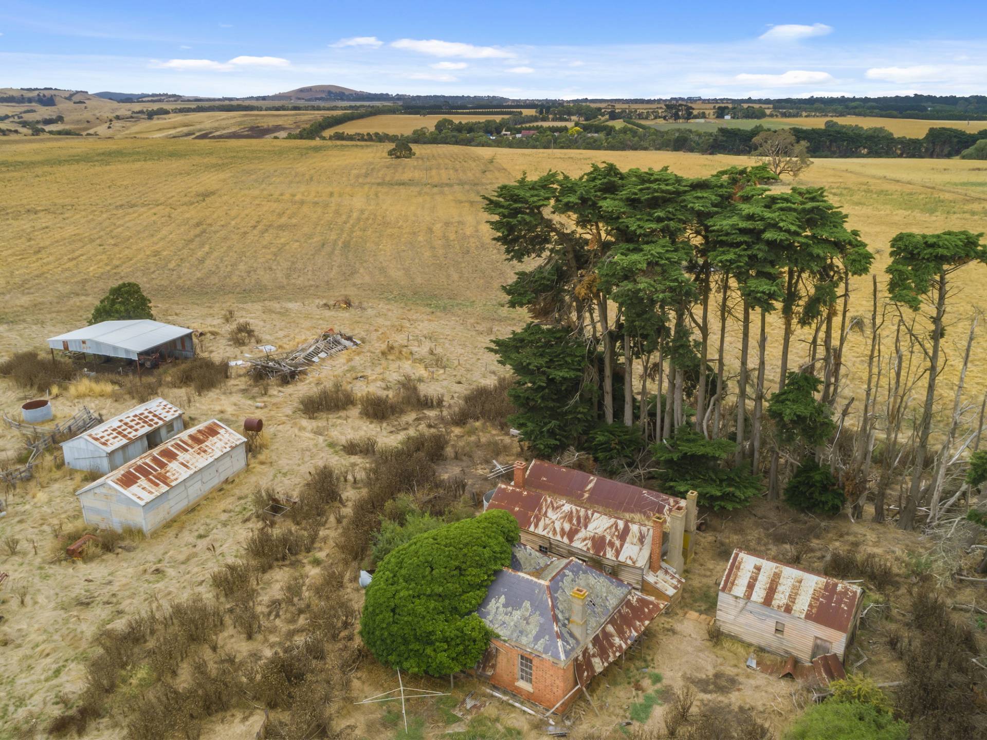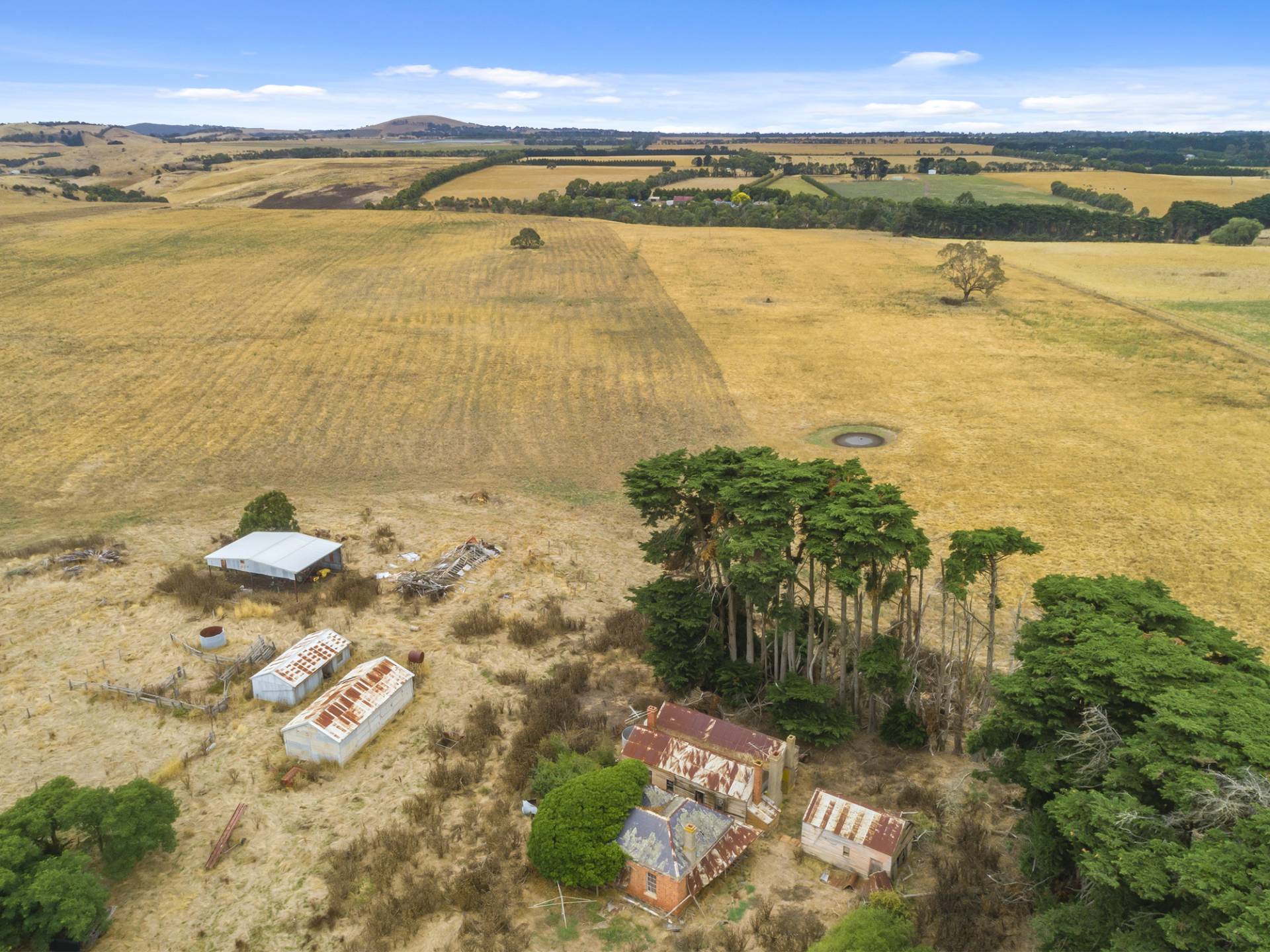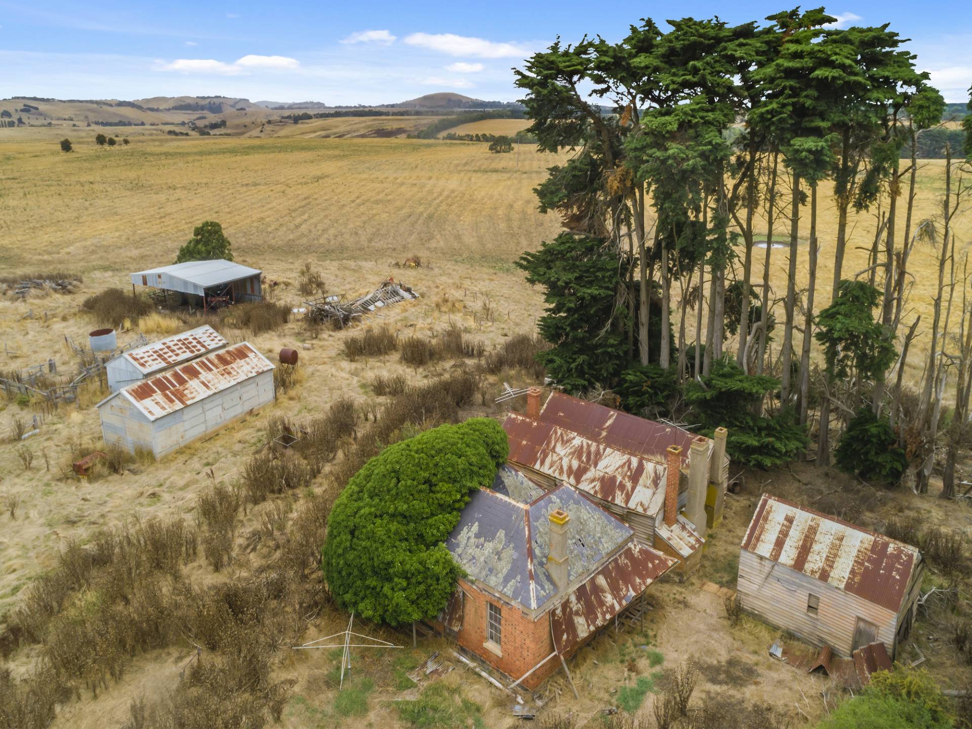 Original brick homestead and out-buildings, hay and additional shedding.