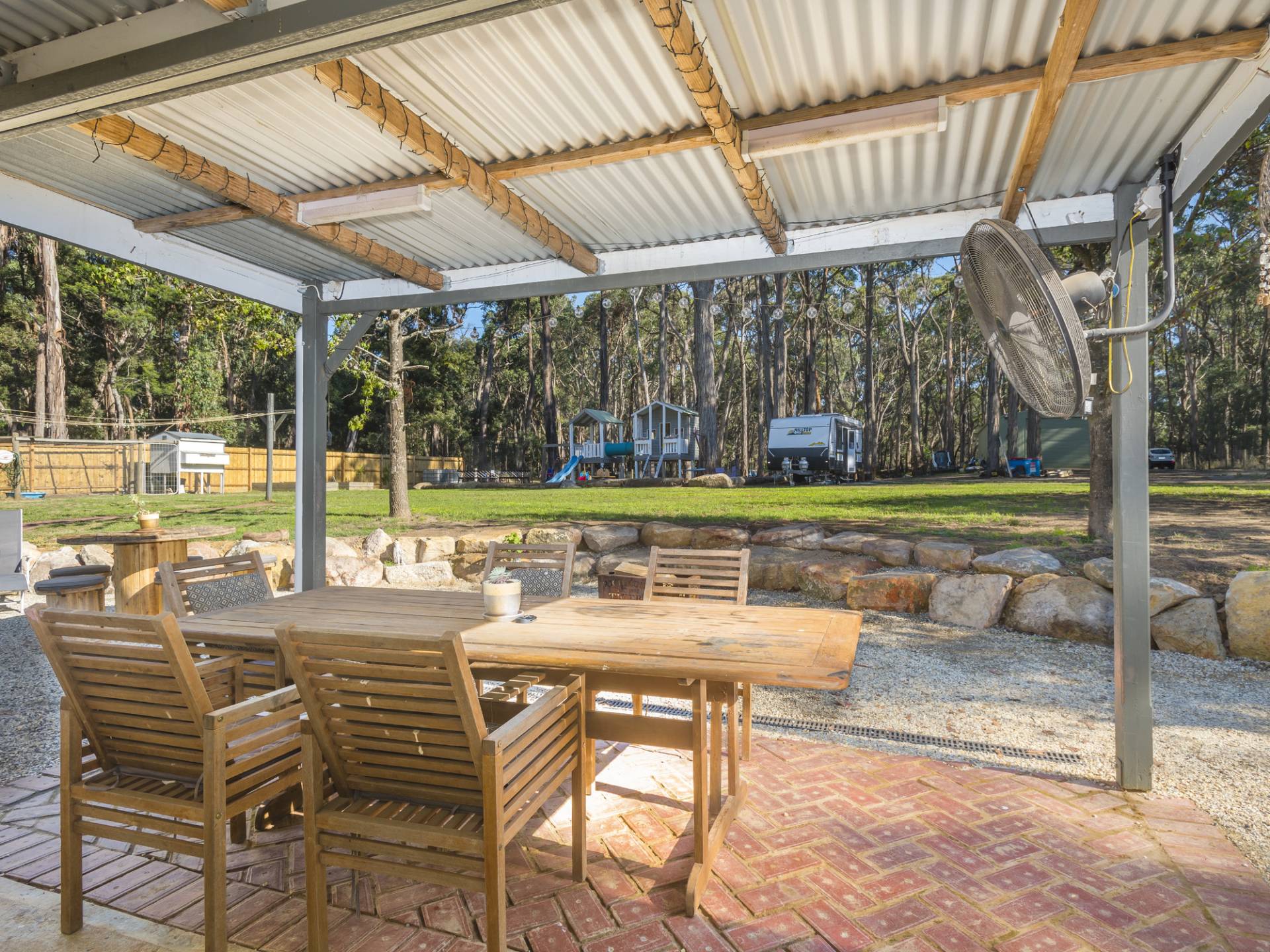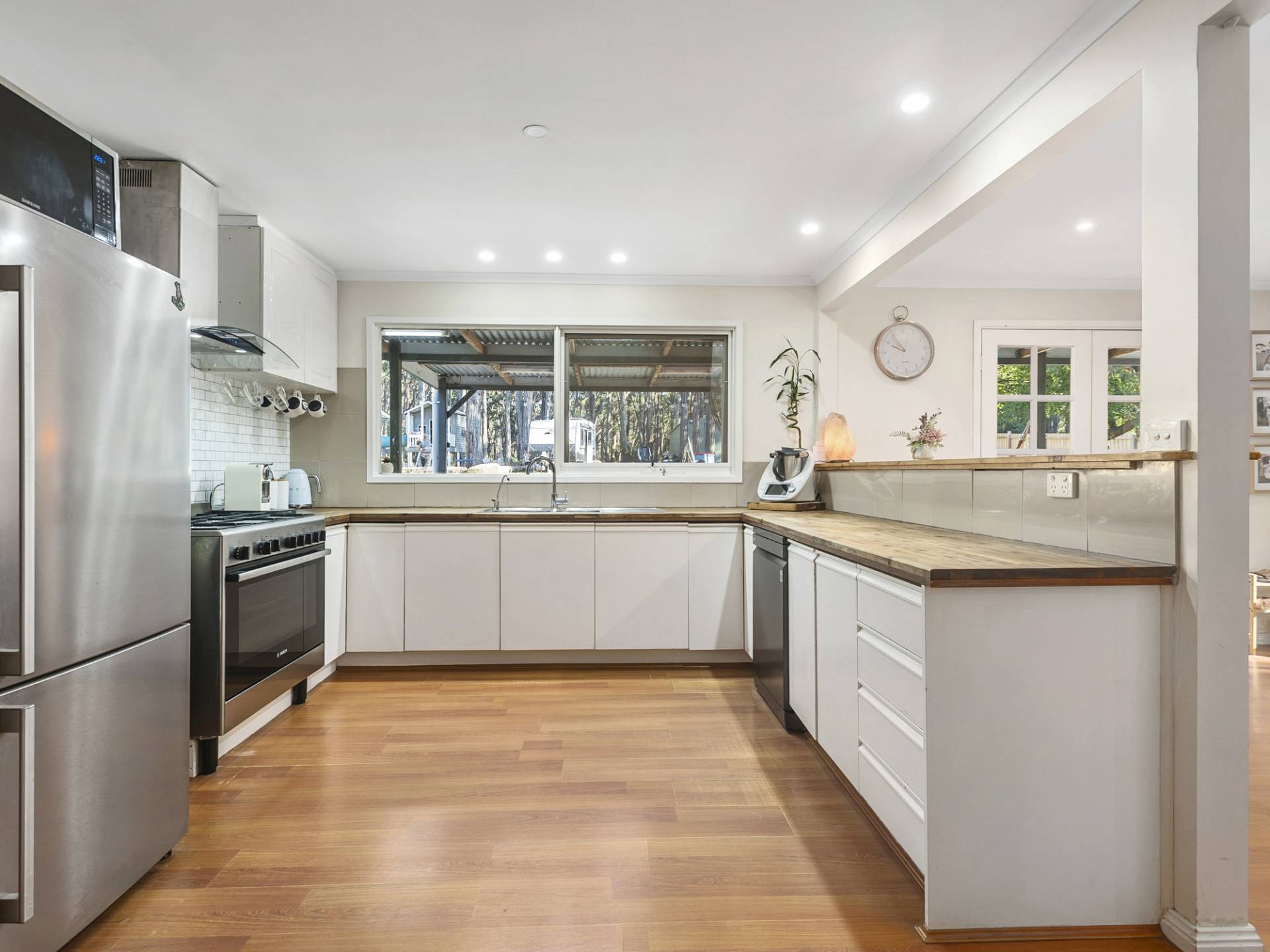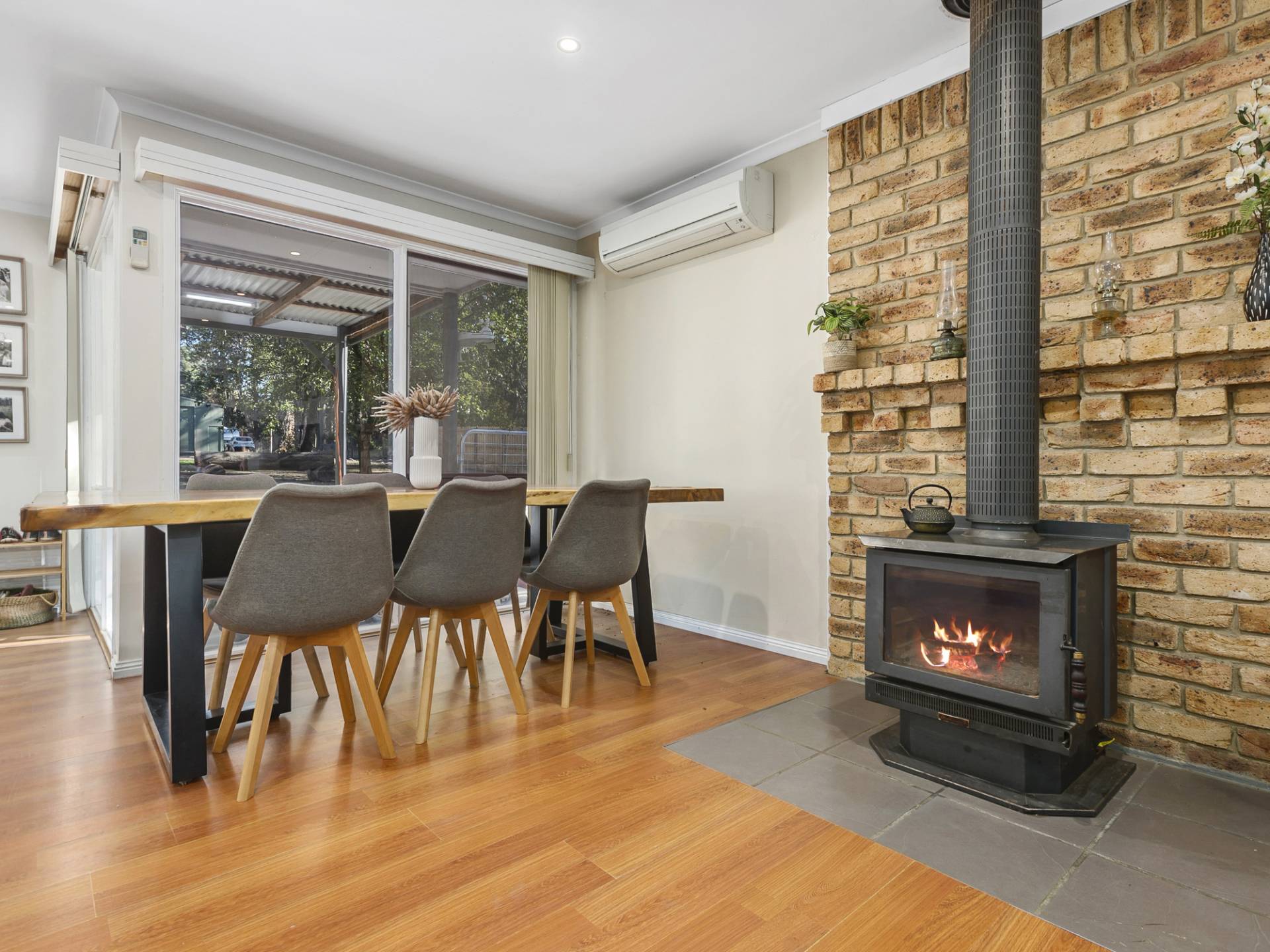 Appreciate the light and bright open plan living-dining area with timber floating floor, a cosy wood fire and reverse cycle split system for comfortable year-round living. The well-equipped kitchen features a 900mm Bosch freestanding cooktop and stove, new LG water saving dishwasher and convenient breakfast bar through to living and outdoor covered entertaining area that is fantastic for parties and family get-togethers.
