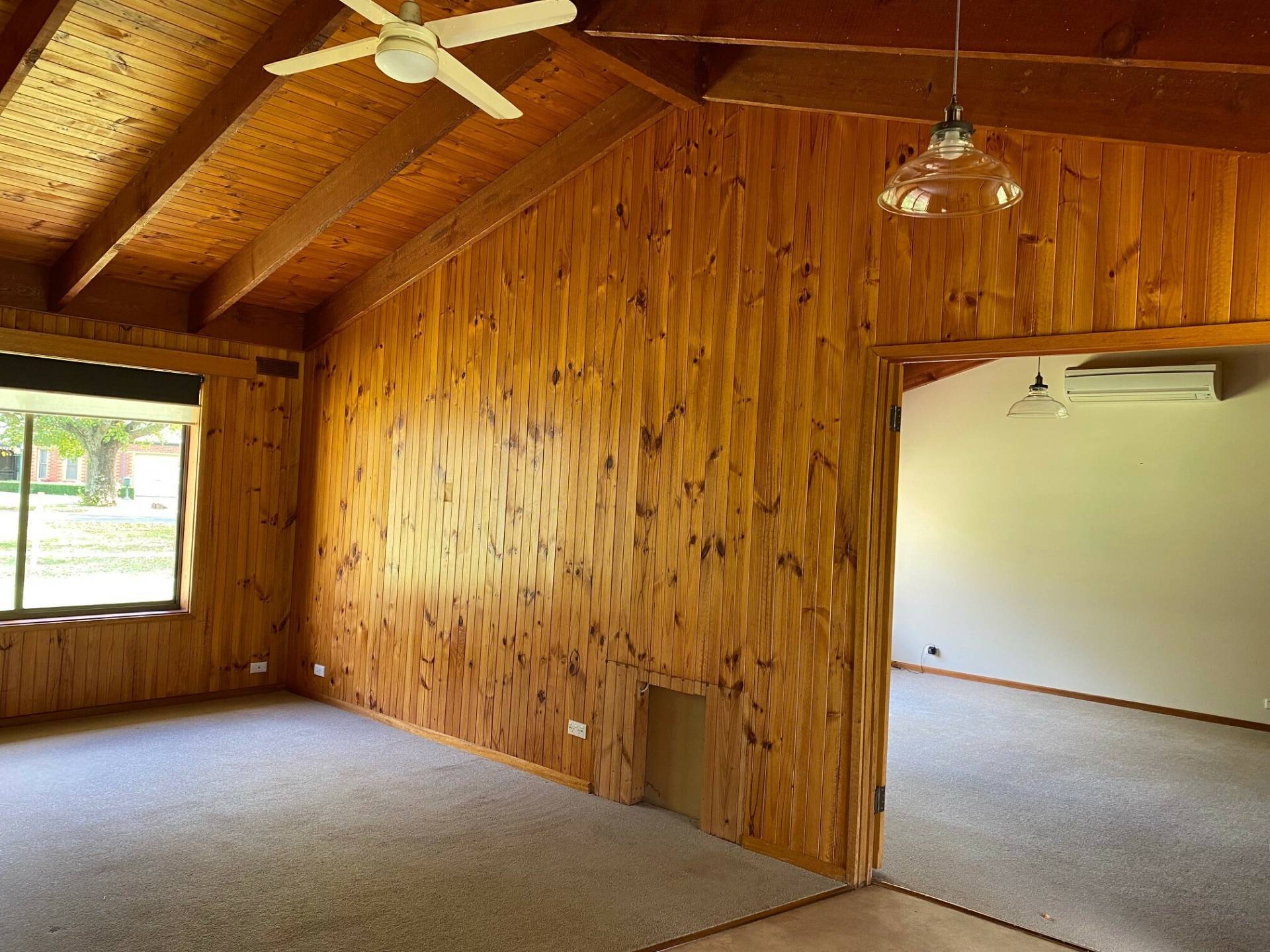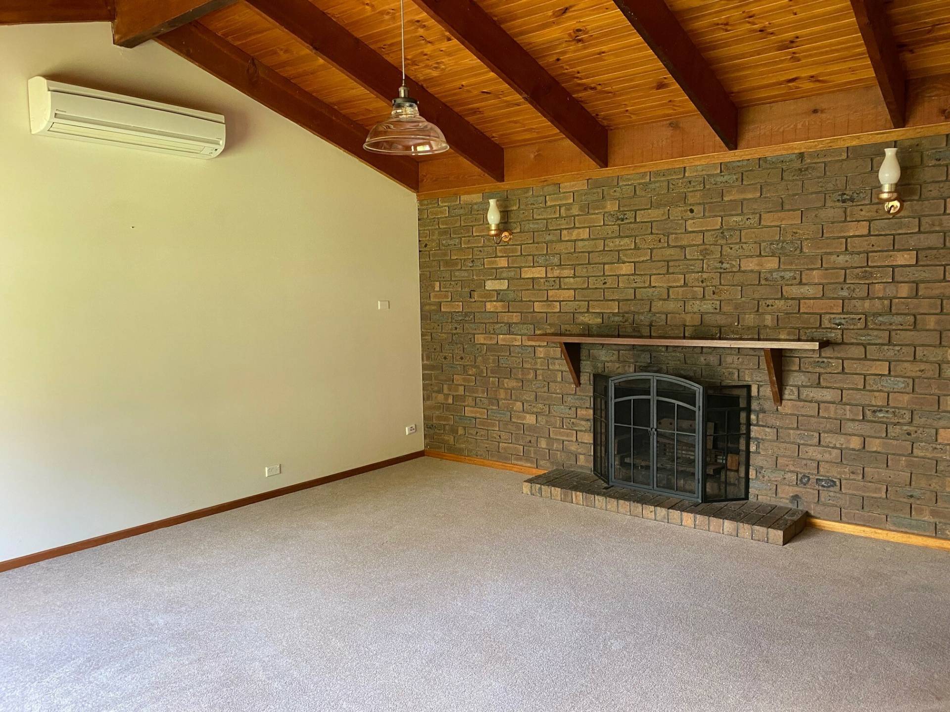 Welcoming living room with reverse cycle air conditioner.