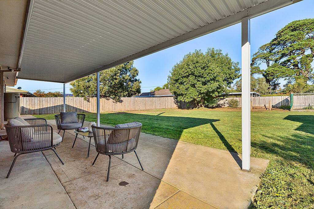 Great sized block and big backyard, perfect for a dog or chooks or for the kids to run around and play. There is a large covered entertainment patio plus 2 garden sheds for extra storage and only minutes to Woodend parks, town centre, schools and shops.
