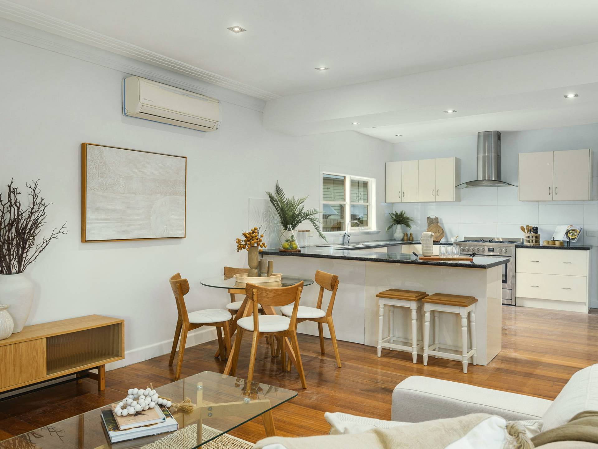 With fresh new painting throughout, the property consists of three well-proportioned bedrooms, central family bathroom, kitchen with new gas 5 burner cooktop and stove, open plan living and dining with near new wood heater, reverse cycle air conditioner and polished floor boards.