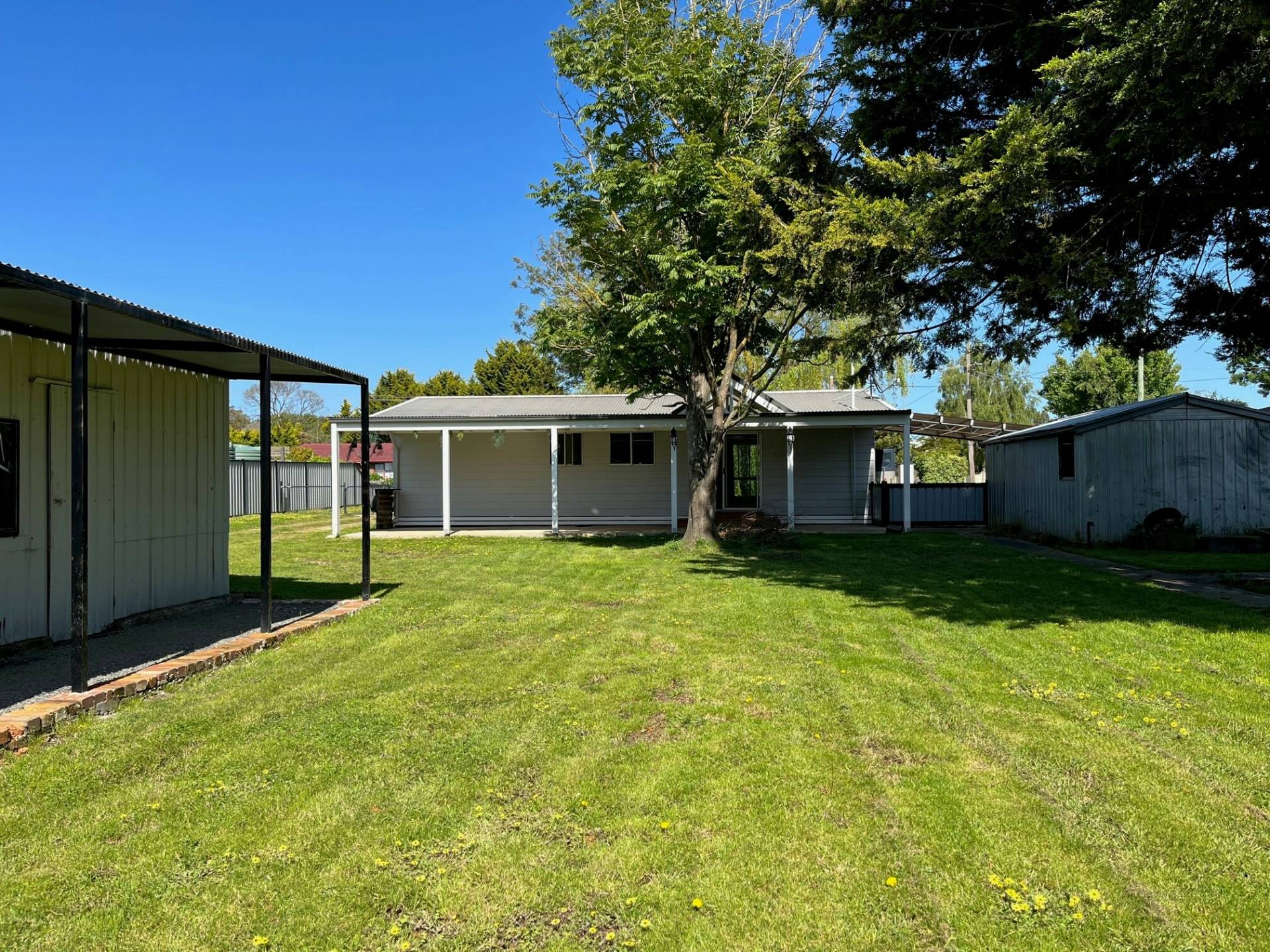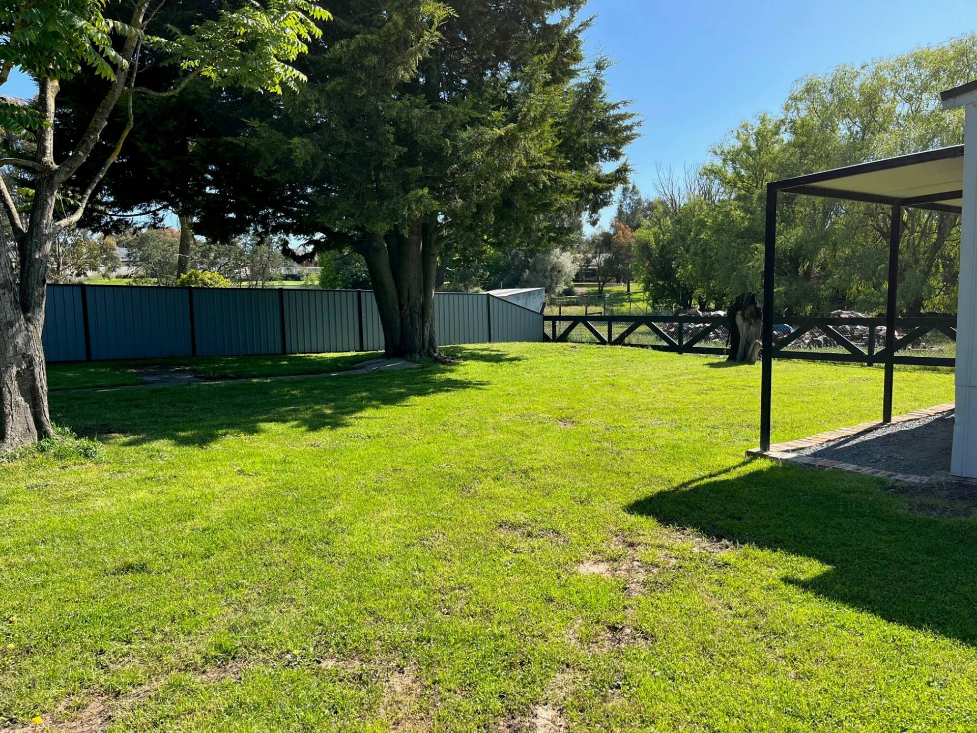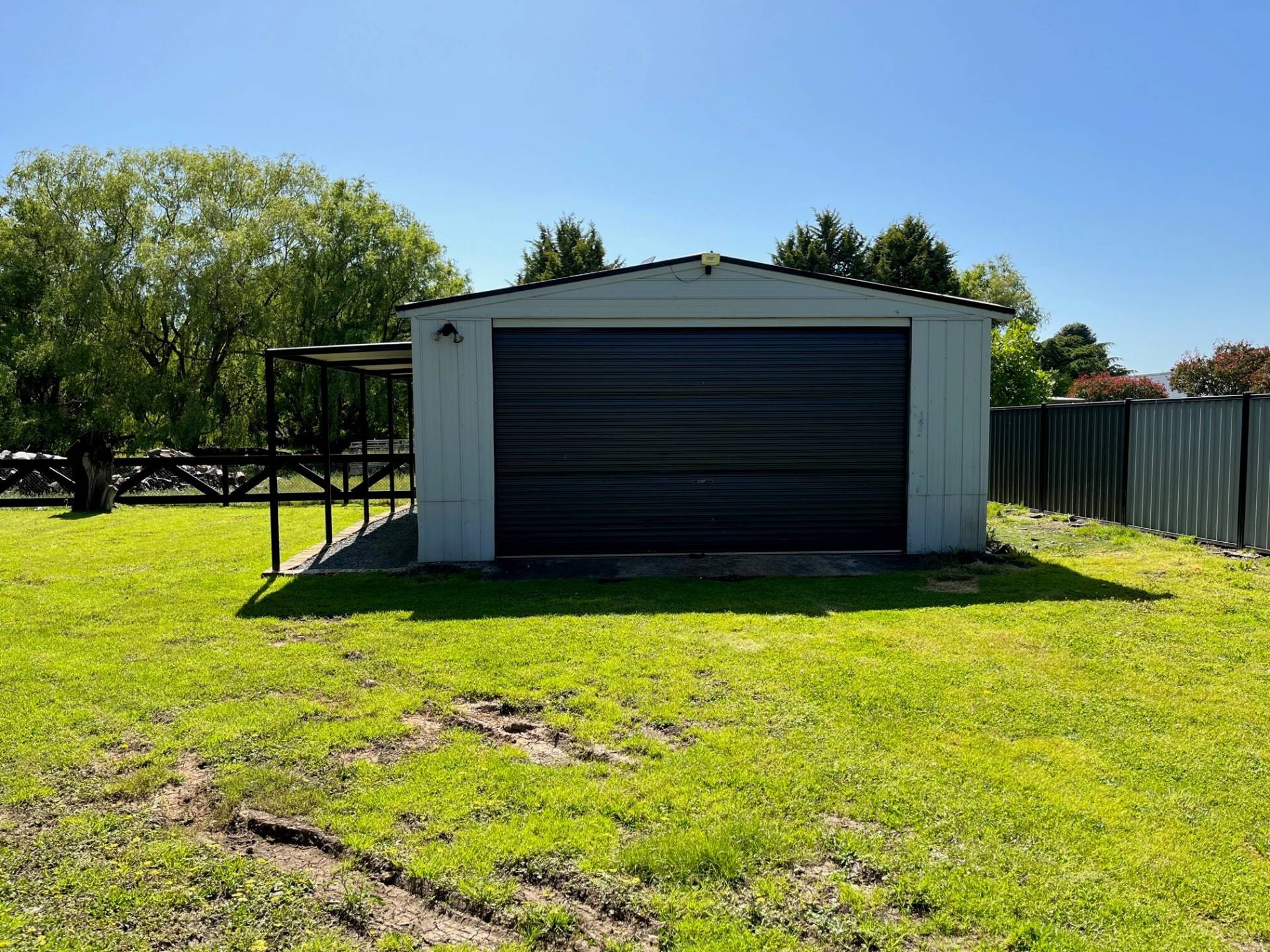 Good sized living area with ceiling fan and reverse cycle air conditioner, kitchen – meals area with bamboo floating floor, wood heater, electric cooking including induction cooktop and dishwasher. Central family bathroom with separate laundry and second toilet. Large shed/garage with concrete floor and power, additional garden shed and carport and huge rear yard with fantastic pergola across rear of house for entertaining with family and friends.