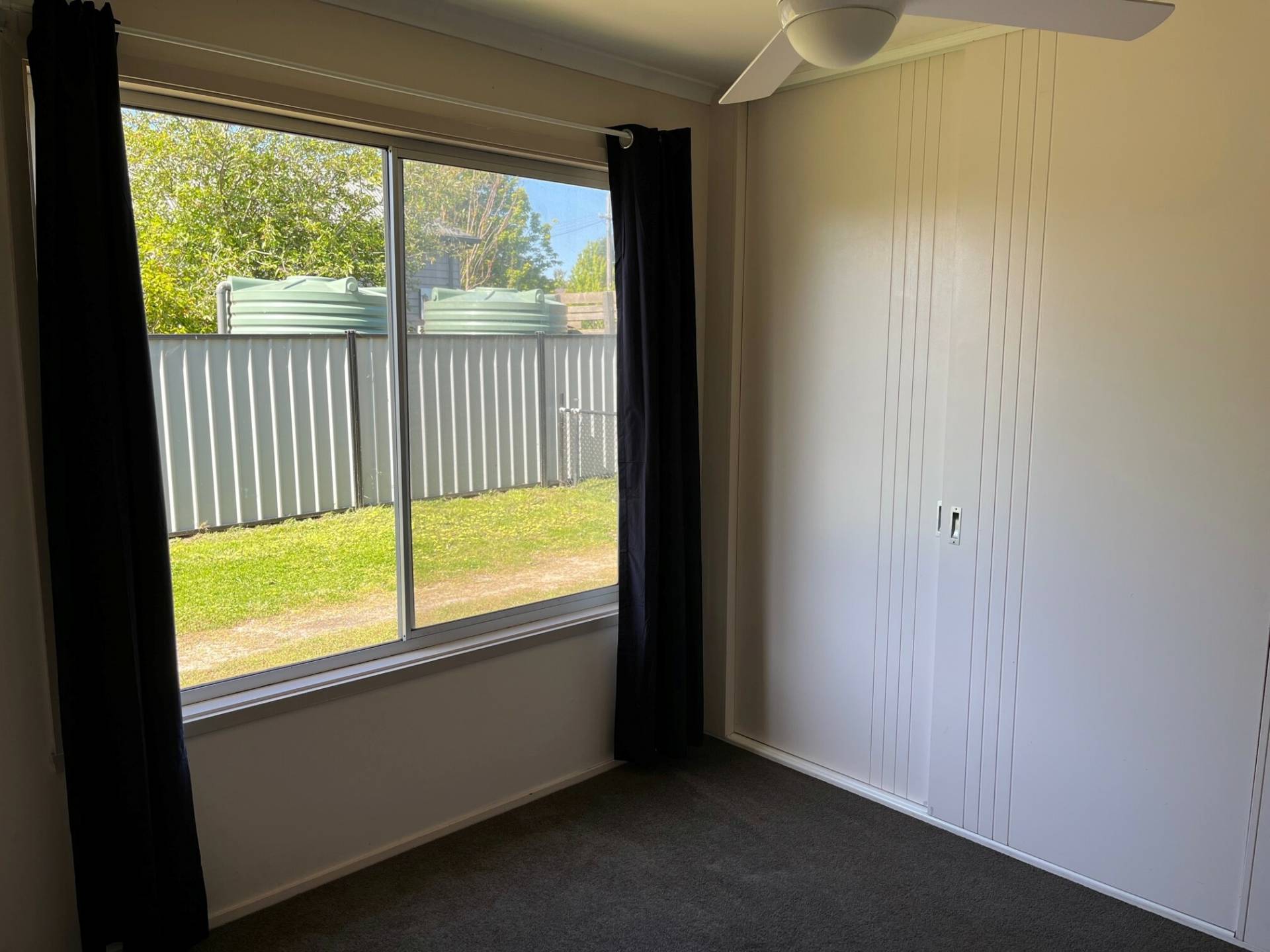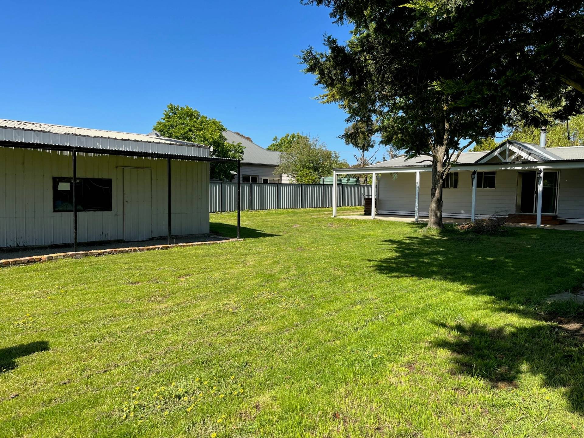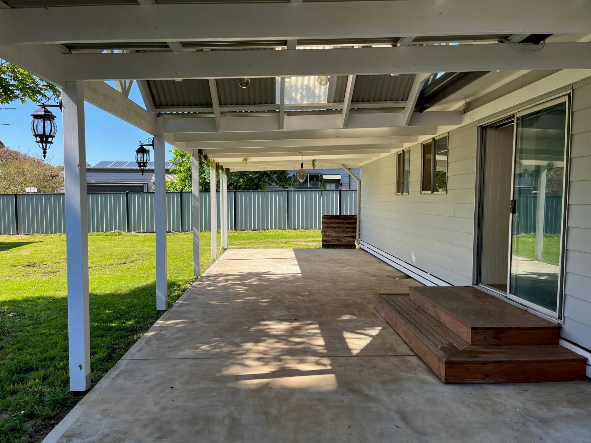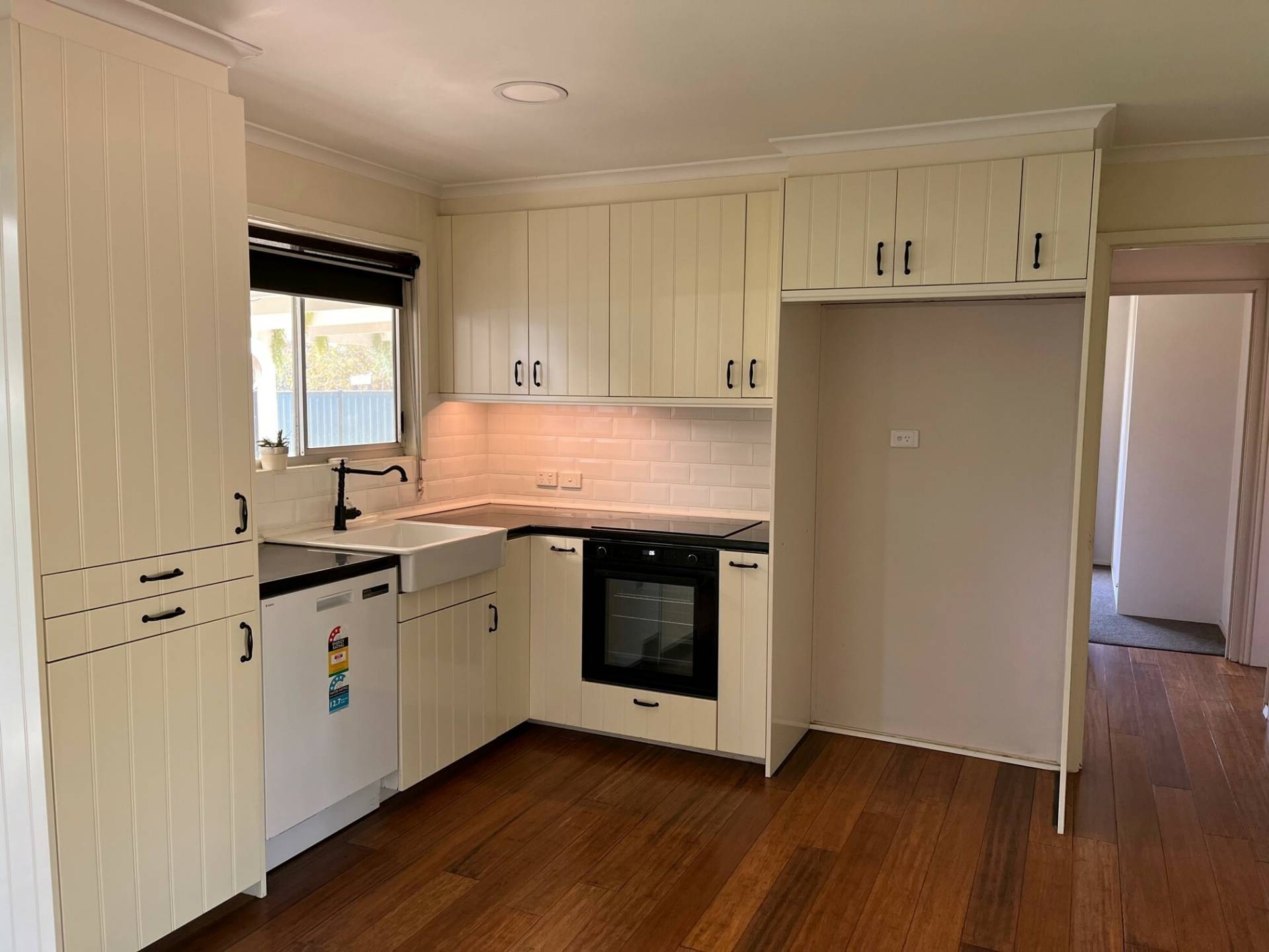 Good sized living area with ceiling fan and reverse cycle air conditioner, kitchen – meals area with bamboo floating floor, wood heater, electric cooking including induction cooktop and dishwasher. Central family bathroom with separate laundry and second toilet. Large shed/garage with concrete floor and power, additional garden shed and carport and huge rear yard with fantastic pergola across rear of house for entertaining with family and friends.