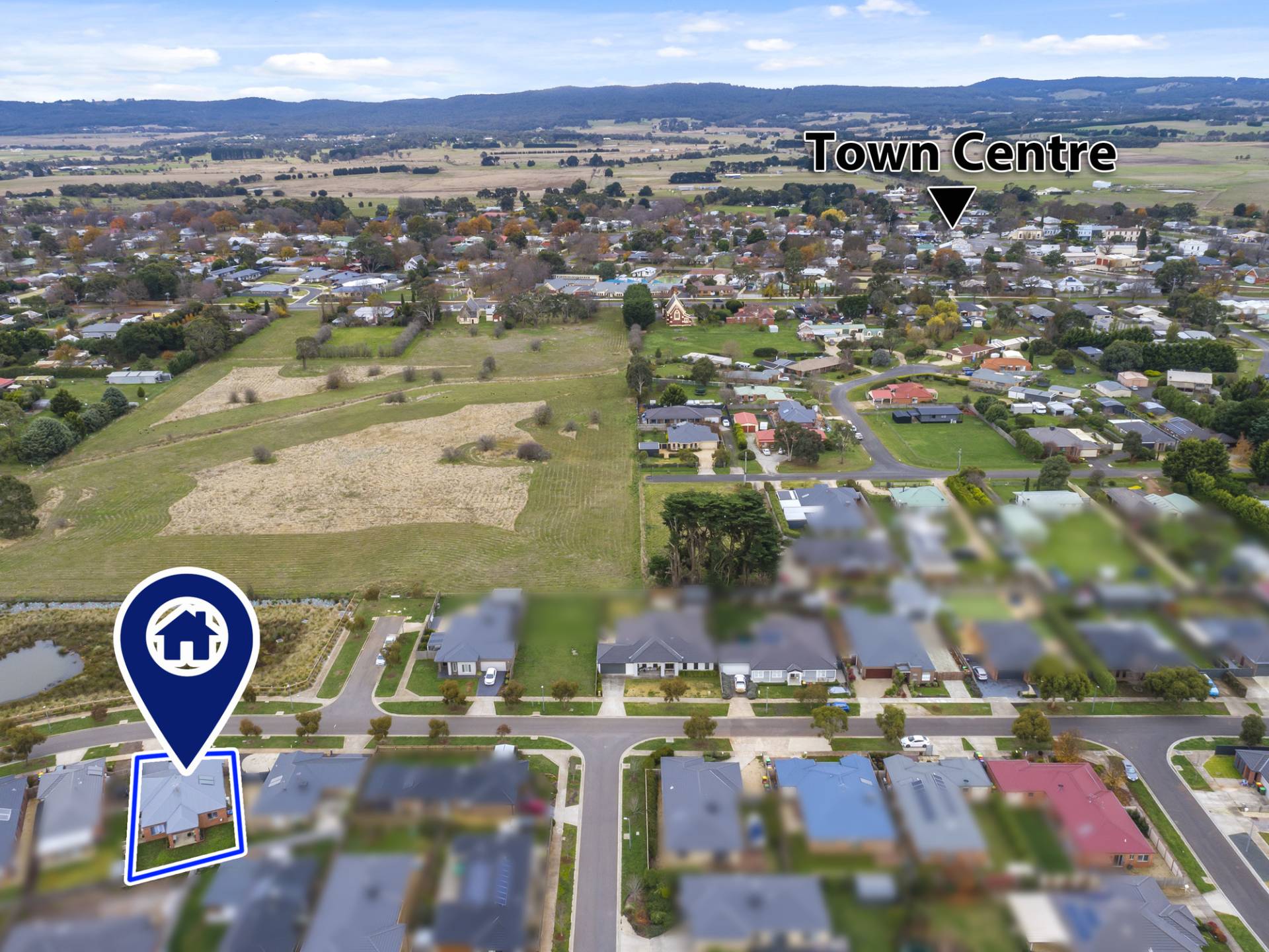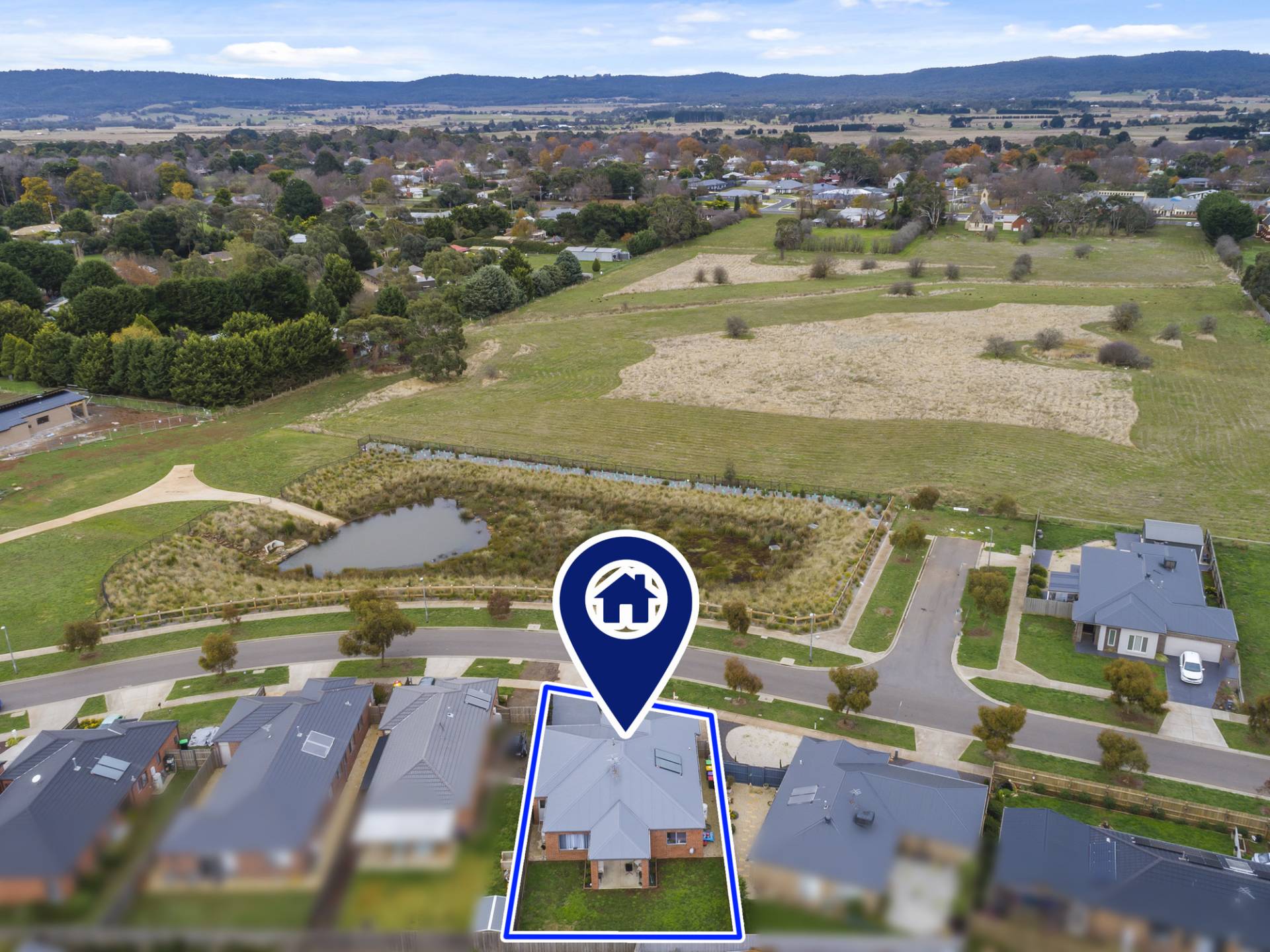 The property is located opposite the James Patrick Way Reserve with a peaceful, wide-open outlook towards central Lancefield providing a feeling of space and tranquillity.