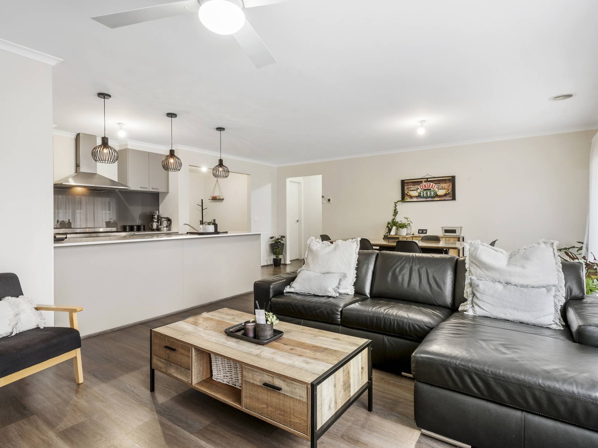 This feeling continues inside the property with a welcoming entry hallway and convenient study nook before entering the open-plan heart of the home. The well-appointed kitchen includes large gas cooktop and electric oven, stone benchtops and walk-through pantry to the laundry and external access. The lounge dining area opens to a covered rear alfresco area for entertaining and get-togethers with family and friends.