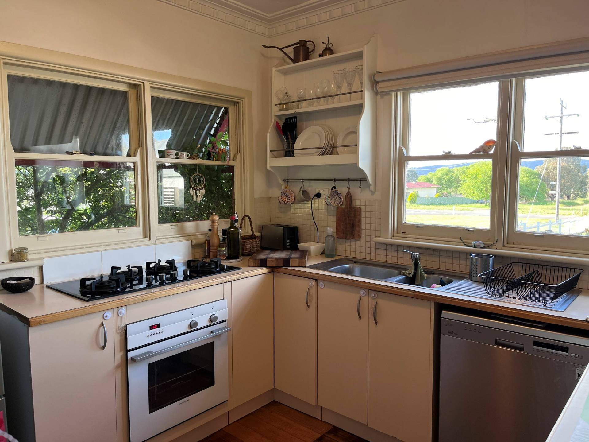 Charming cottage with light and bright open plan kitchen, living and dining with northerly aspect. The country style kitchen includes gas and electric cooking and dishwasher. French doors lead to rear entertaining deck and welcoming private rear gardens.