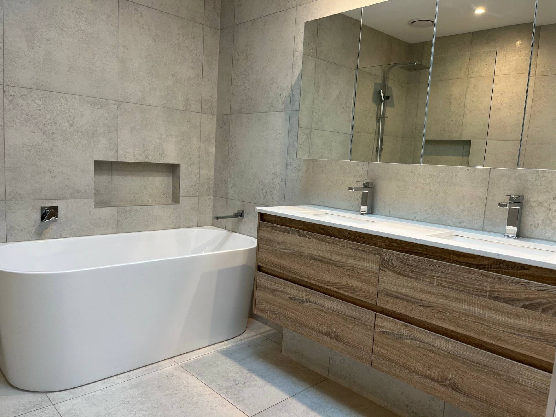 The centrally located and renovated family bathroom is luxurious with large soaking bath tub, walk in shower, heated towel rail and double vanity. There is a separate toilet/powder room that has also been recently renovated.