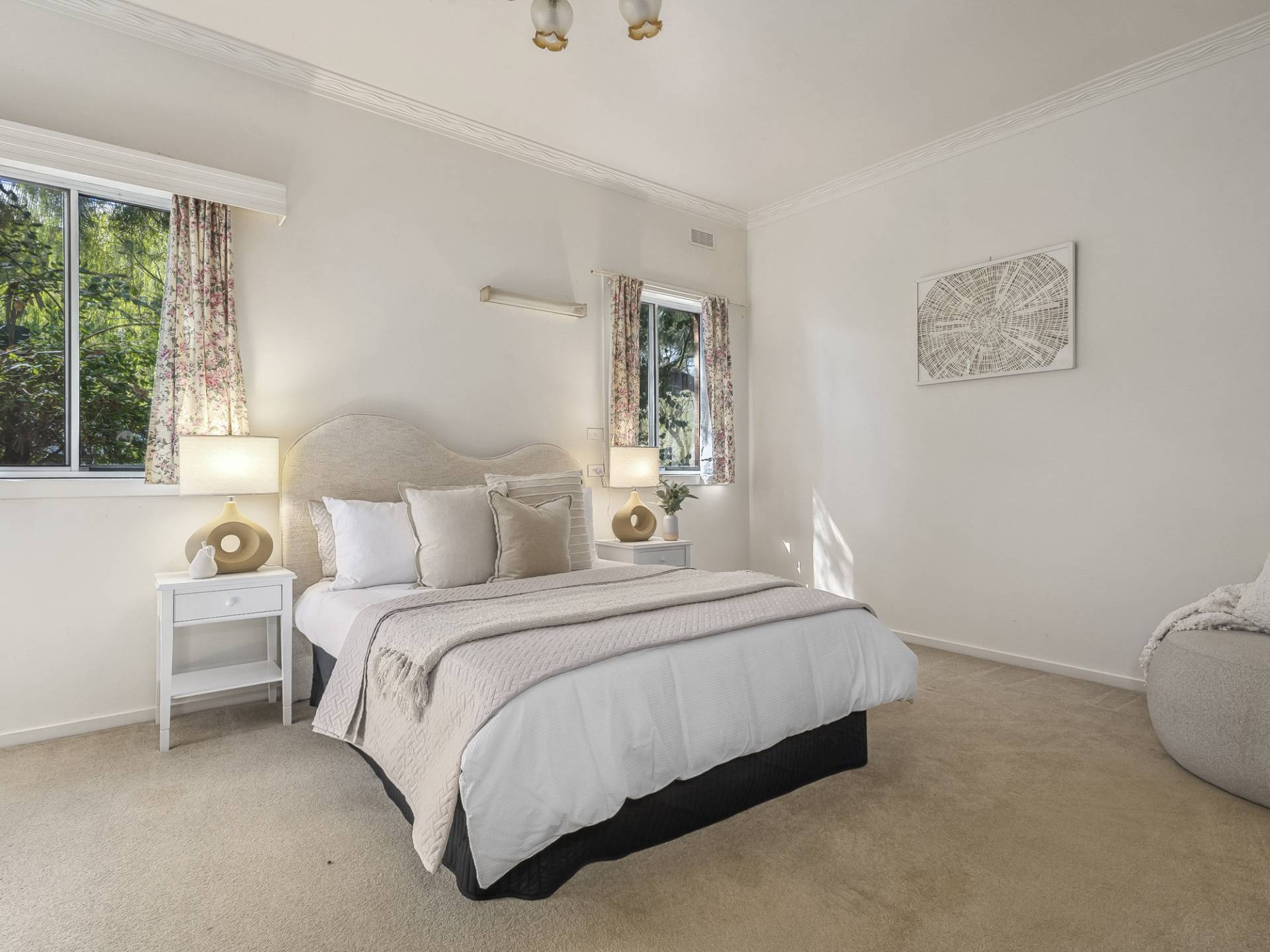 The two bedrooms are large in size with leafy outlooks and main includes built in robe. Family bathroom with separate shower room and toilet and laundry accessible from wide central hallway.